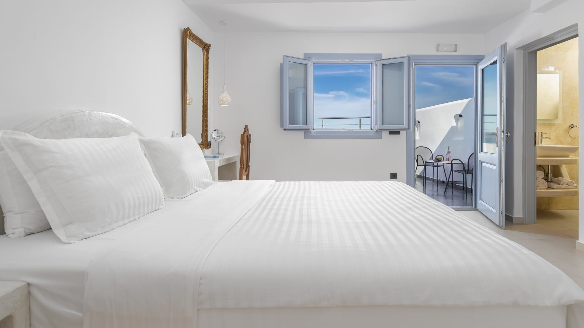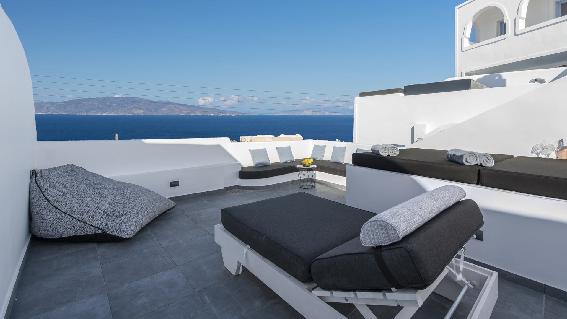2 different bathrooms with shower and two different outdoor Hot tubs offering stunning sea viws! Luxury toiletries and room service included.